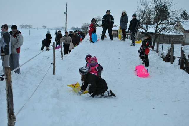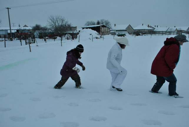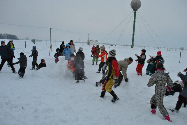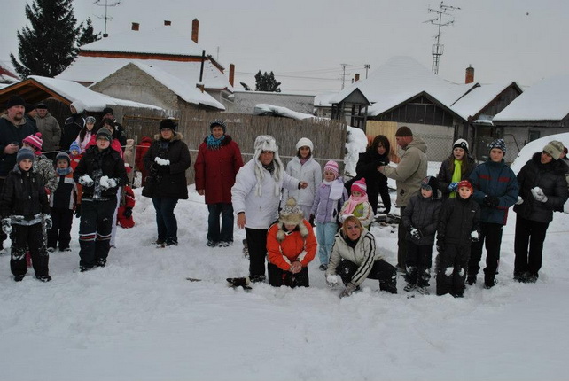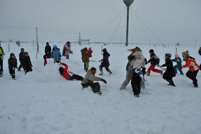 Két napig szinte megállás nélkül hullott a hó, ezt nem lehetett kihagyni. Néhány telefon, bíztatás, időjárás előrelejzés és elindult a szervezés. Pár óra alatt minden kialakult. Ezzel a lehetőséggel élni kell!! Előző este egy vidám ötletbörze,... és vártuk a szombat délutánt. Megérte!! Gyermekek lehettünk újra, a gyermekek pedig velünk játszhattak. A farmon már mindent előkészítettek gondos házigazdáink Nagy Péter és Andrea. Forrt a víz a katlanban a teának, a nyugdíjas klub tagjai sorban hozták az előre elkészített palacsintákat becsomagolva, hogy melegen kínálhassák, közben pedig az asszonyok egy csoportja a forralt bor készítésével foglalatoskodott. Mi elkészítettük a téli játékok pályáit, kijelöltük a terepet és kipróbáltuk a játékokat, és természetesen a rögtönzött hódombocskán is lecsúsztunk, már csak azért, hogy eléggé biztonságos-e. Csoportokban érkeztek az emberek. Pillanatok alatt benépesült a farm. Beszélgettek, kóstolgattak és állatokat simogattak. A programismertetés után elindult az első játék: hóvárépítés és várvédés, melynek célja a másik vár zászlójának eltalálása, majd közelharcban a megszerzése volt. Bíró legyen a talpán, aki meg tudta volna ítélni ki lett a győztes. Majd ismét csapatokat alakitottunk, számszerint 7 csapat vett részt a téli olimpiánkon. Öt állomáson kell helytállnia a csapat minden tagjának: körbedobás és célbadobás hógolyóval, szlalomozás, nyomkövetés és kincskeresés. Amíg a versenyt kiértékeltük a résztvevők csúszkálhattak a dombon, vonatozhattak vidám zenére egymás lábnyomát követve, majd birkát és kecskét foghattak. Végül házigazdánk kihozta az egyik gyönyörű lovát, és jutalomként minden gyermek szánkózhatott lovas fogattal. Ezeknek a játékoknak nem volt vesztese, csakis győztese, hiszen sokat nevettünk, jó szórakoztunk a friss levegőn. Reméljük, hogy még sok hasonló vidámságban lesz még részünk a tél folyamán.