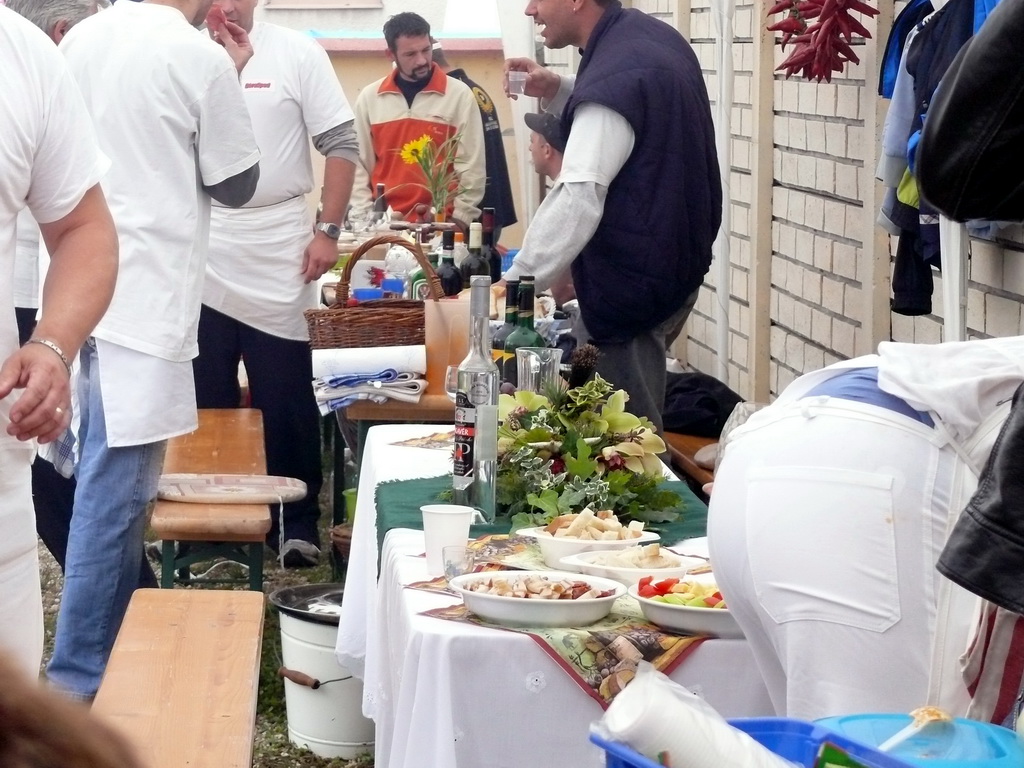 Az emberek kóstolták az elkészült étkeket, kínálgatták boraikat. Közben szórakoztak, hiszen gazdag műsorral várták őket a rendezők. Estig tartott a nagy dínom-dánom. Tudnék még mesélni a Sörbarátok pálinkázási szokásairól, a Laki Agronómusok ízlésesen díszített sátráról, a Mester és tanítványai szíves vendéglátásról a Vadkanok ötletes megnevezéseiről, Manci néni Emenvés gulyásáról, de hát a mese lassan a végéhez közeledik.
